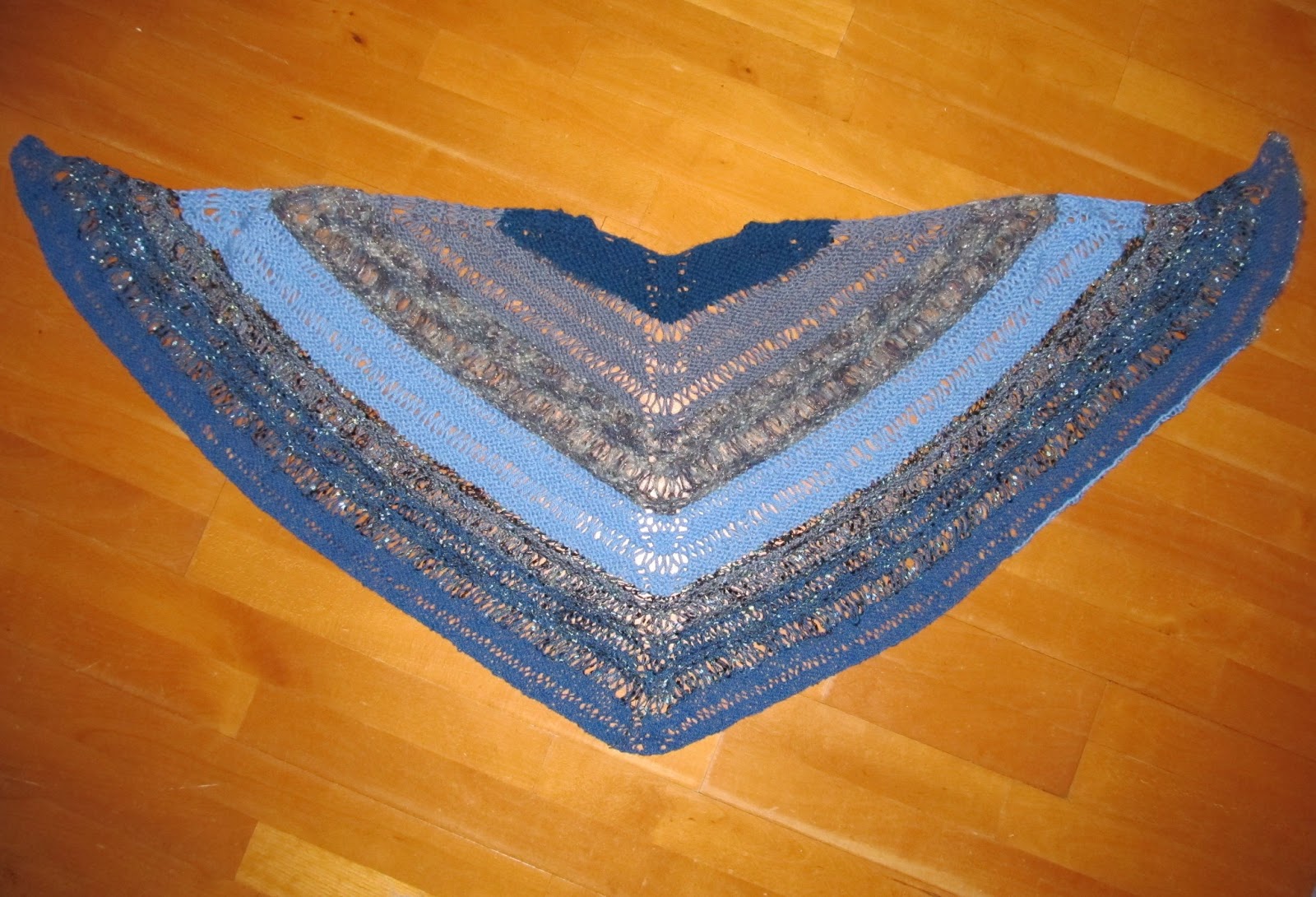 Endnu et restegarns-sjal. Nu begynder jeg at kunne se bunden af restekassen.