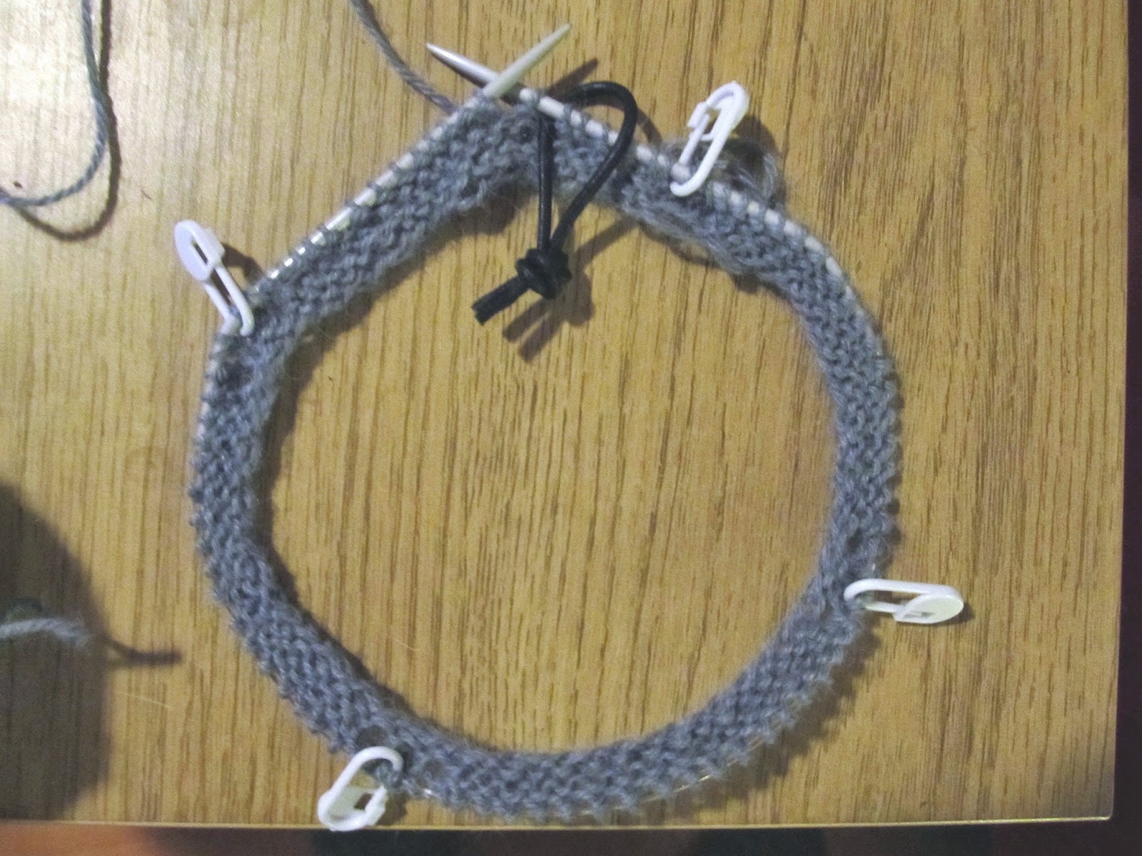 Så på den måde kan du tilpasse, hvor stram halsåbningen skal være. Eftersom den strammeste er beregnet ud fra hovedomreds minus det garnet kan strække, kan også halsåbningen tæt på halsen kommer over hovedet.