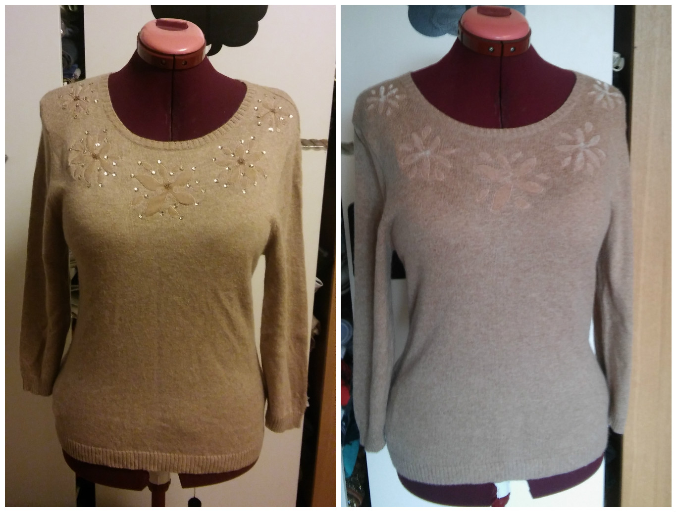 Pulloveren er forresten også et redesign. Et hurtigt lille et: Jeg blev bare nødt til at eje den, for den er lavet af den blødeste kashmir. Men den havde en masse perler og pailetter, og det var bare så 00’er agtigt. Så væk med dem.