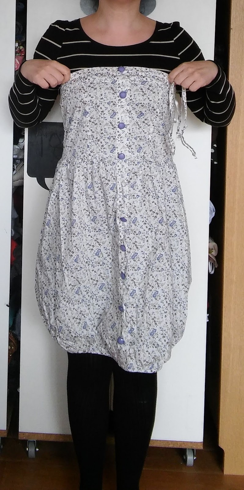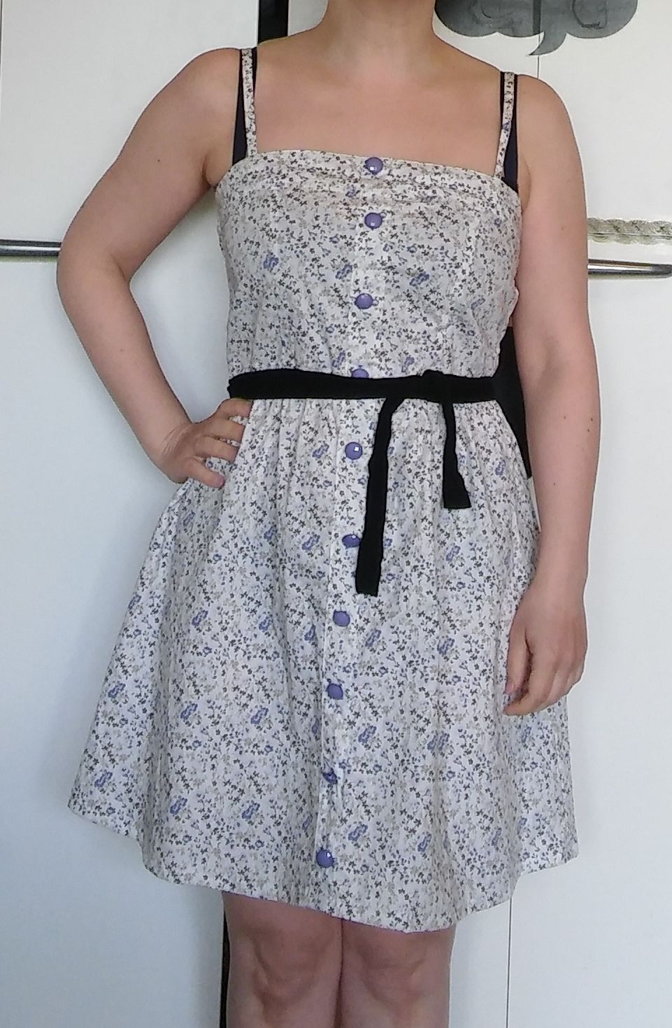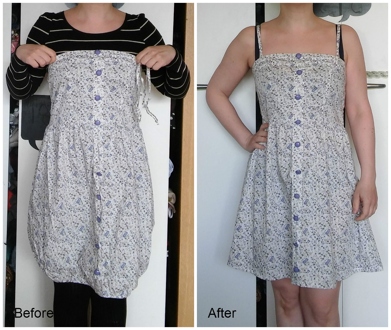 The dress had a balloon skirt, which is very unflattering on me. I cut of the hem and made a new one.