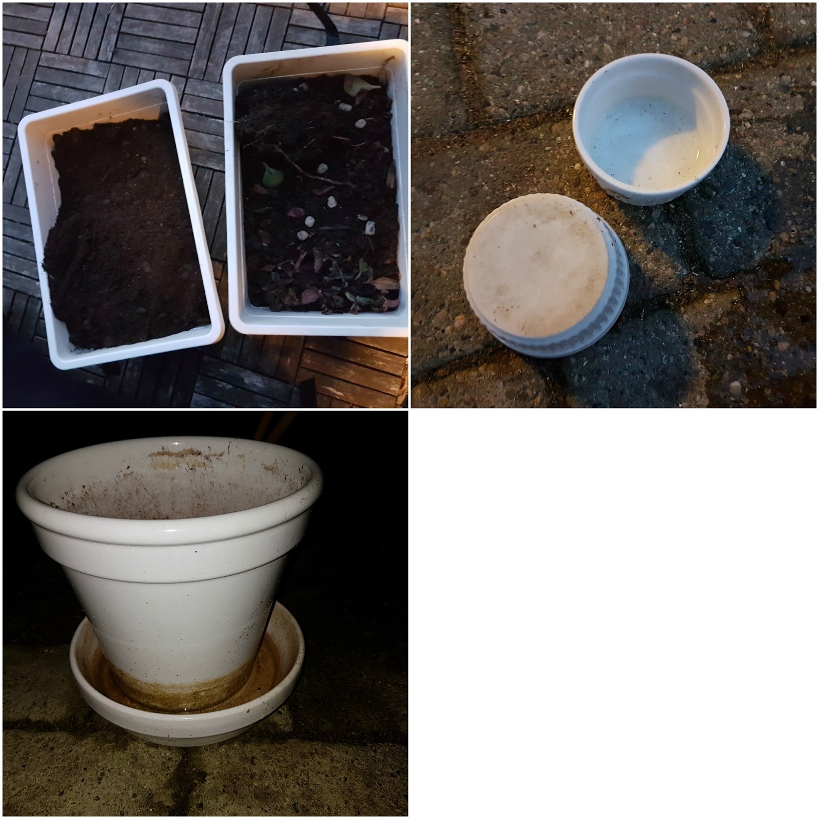 – Jeg havde haft en sæk blomsterjord liggende på terrassen i flere uger, da disse indendørs potter skulle fyldes. Nu blev det gjort.