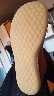 The soles are MukiShoes’ own design. They feel soft, though not cusioned, is very flexible and provide good grip. I have good ground feel in these.