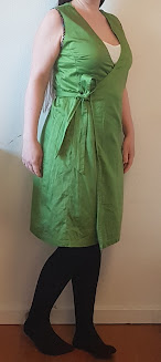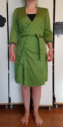 Dress in my favourite green colour. It had a sewn shut wrap and a loose belt. But I wanted it to be a real wrap dress.