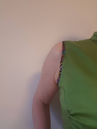 Nej ærmerne sad ikke så godt på mig, så jeg fjernede dem og brugte kantebåndet nederst på ærmerne til at kante ærmegabene.